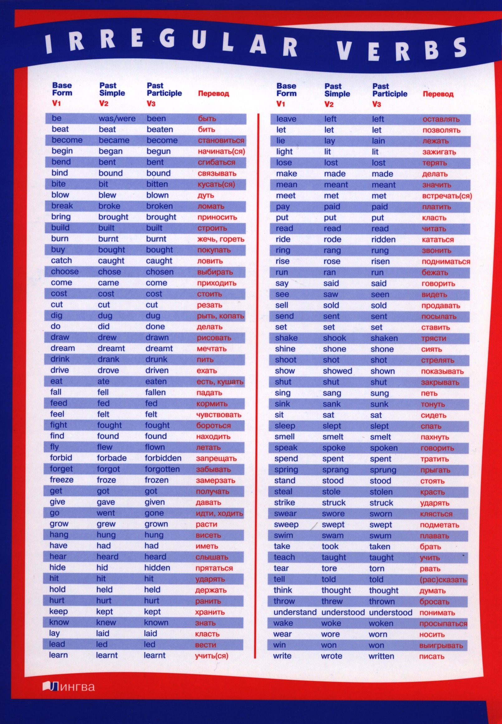 Английские неправильные глаголы в таблицах – алфавитной и рифмованной. Очень легко запомнить!
