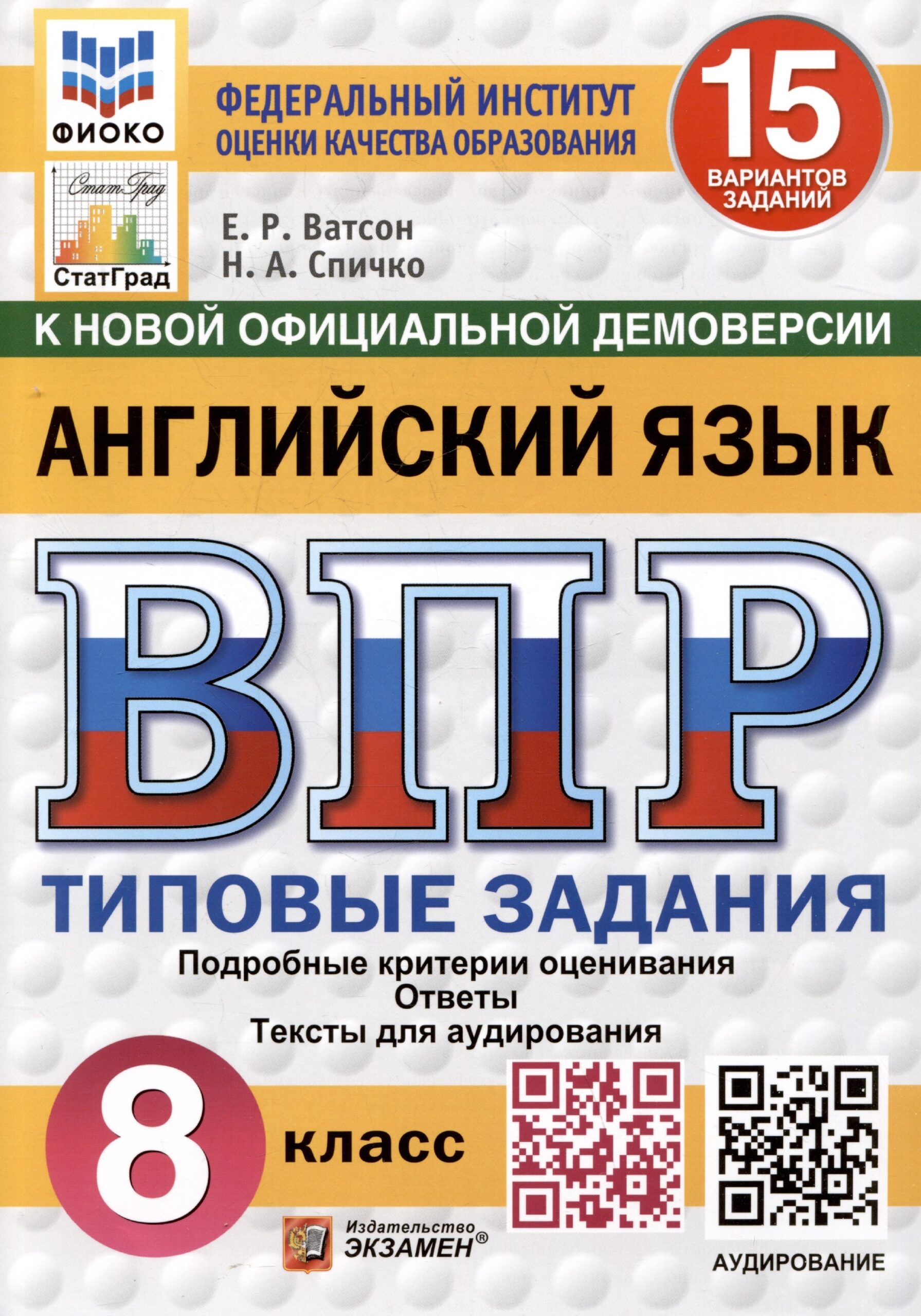 Данное пособие полностью соответствует федеральному государственному образовательному стандарту. Книга содержит 15 вариантов типовых заданий Всероссийской проверочной работы (ВПР) по английскому языку для учащихся 8-х классов. Сборник предназначен учащимся 8-х классов, учителям и методистам, использующим типовые задания для подготовки к Всероссийской проверочной работе по английскому языку.