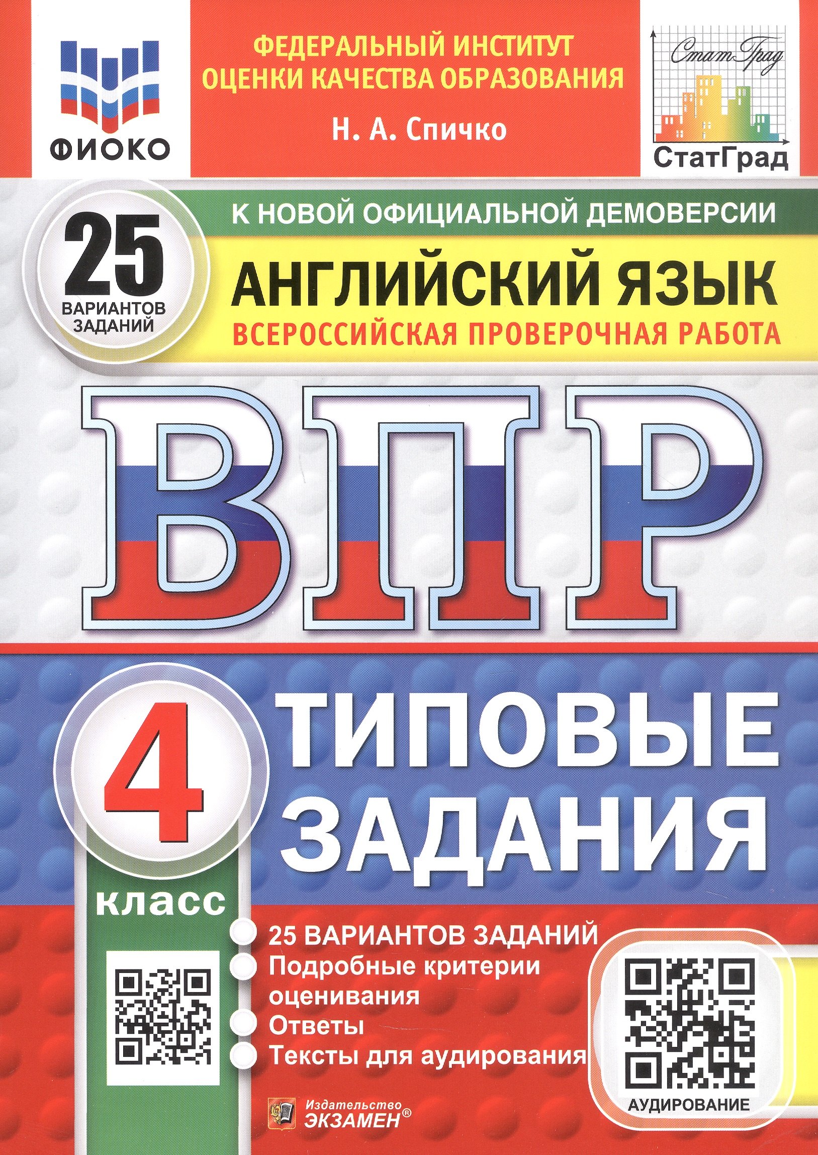 Данное пособие полностью соответствует федеральному государственному образовательному стандарту. Книга содержит 25 вариантов типовых заданий Всероссийской проверочной работы (ВПР) по английскому языку для учащихся 4-х классов. Сборник предназначен учащимся 4-х классов, учителям и методистам, использующим типовые задания для подготовки к Всероссийской проверочной работе по английскому языку.