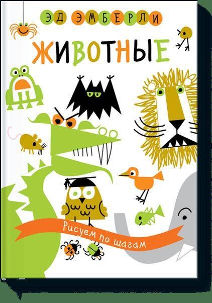 “В ваших руках одна из лучших книг по рисованию за последние 40 лет! Первое издание «Животных» с огромным успехом вышло в США в 1970 году, и до сих пор книга остаётся бестселлером на Западе..Эд Эмберли — гениальный иллюстратор и фантазёр. Он известен тем, что придумал для маленьких детей простые инструкции: сложные изображения в них разложены на простейшие фигуры, и дети их с лёгкостью повторяют..С этой книгой ваш ребёнок сможет нарисовать любое животное головастика и тигра, рыбку и огромного дракона. Нужно лишь уметь рисовать круг, квадрат, треугольник, а ещё писать цифры и пару букв. Они сами сложатся в забавных животных!”