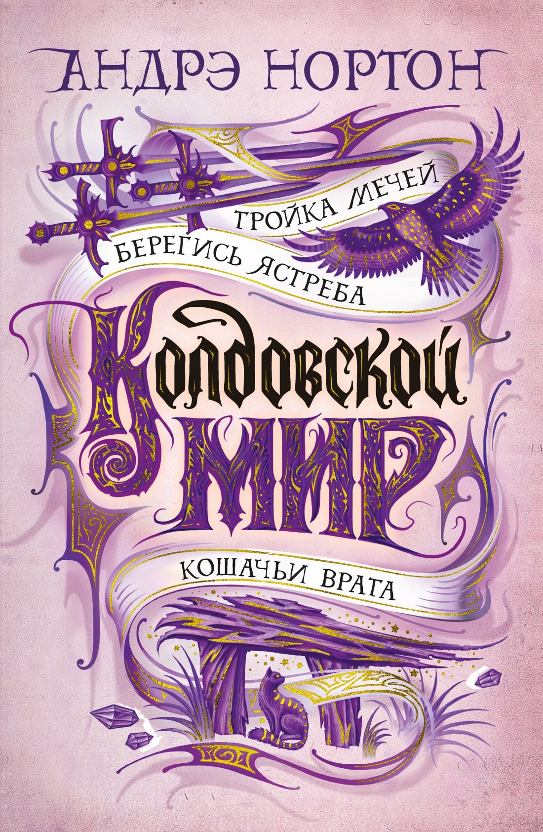 Перу американской писательницы Андрэ Нортон, «великой леди фантастики» XX столетия, принадлежит более 130 книг. Критики, увы, не спешили поддержать ее, а сама она была слишком скромным человеком, чтобы пробивать себе дорогу к пьедесталу. Тем не менее талант ее сиял так ярко, что не остался незамеченным. В нашей стране имя писательницы стало известно после выхода романа «Саргассы в космосе», блистательно переведенного Аркадием и Борисом Стругацкими. А в 1963 году в США вышла книга под названием «Колдовской мир» — так был создан один из известнейших фэнтези-миров в истории жанра. Вселенная Нортон удивительна — магия здесь всесильна (и даже признана официально), а законы непреложны, и нарушившего их рано или поздно настигает справедливое возмездие. В Колдовской мир можно попасть через магические Ворота — и это дает любому человеку замечательный шанс начать новую жизнь на новой земле. В настоящий том входят три романа: «Тройка мечей», «Берегись ястреба» и «Кошачьи врата» — все в новом переводе.Лорд Трегарт, сын знаменитого Саймона Трегарта, отставного полковника, некогда проникшего в Колдовской мир, является в Эсткарп с призывом вернуться в родные земли Эскора, чтобы избавить их от вторжения Темных Сил. В числе тех, кто отправился в путь вместе с лордом, — хилый и робкий паренек Йонан. Но именно ему в руки попадает могущественный меч, который сам выбирает себе хозяина… Один и тот же загадочный сон много лет преследует Тирту и заставляет ее пуститься на поиски Ястребиного Утеса — разрушенной крепости, некогда принадлежавшей ее роду… В безлюдном уголке Северо-Шотландского нагорья Келси спасает дикую кошку от охотника, в пылу борьбы пролетает через каменную арку и… оказывается в Эскоре — стране Колдовского мира. Келси предстоит встретиться с Саймоном Трегартом, Йонаном, Владычицей Зеленой Долины и вместе с ними защищать Эскор от Зла.